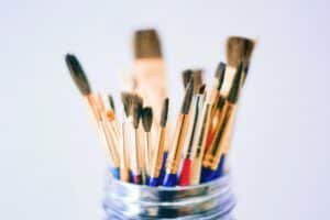Almost any soft-haired natural or synthetic brush will work well for watercolor. Avoid hog-bristle brushes (typically used for oil painting). A variety of sizes is preferable, including large brushes that can hold lots of water and are good for painting soft-toned backgrounds.